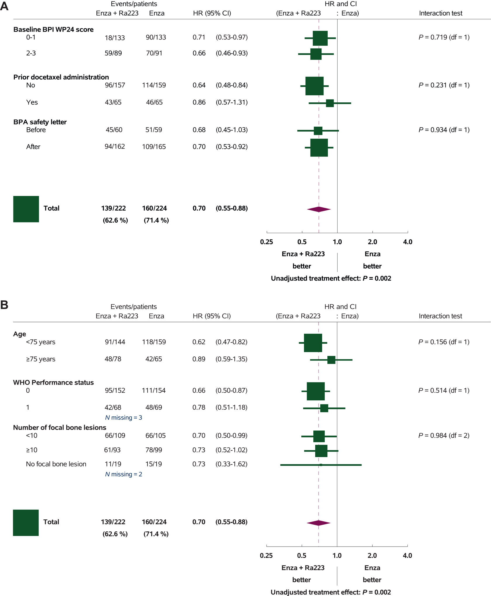 BPA — костно-защитный агент; CI — доверительный интервал; Enza — энзалутамид; HR — отношение рисков; Ra-223 — радий-223.